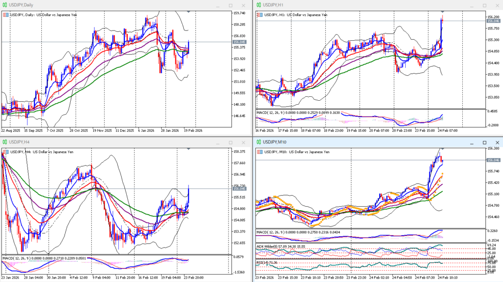 上上上。1時間足急騰パーフェクトオーダー、日足ネックラインで上ヒゲ陰線、10分足パーフェクトオーダー、EMA10ファーストタッチ。